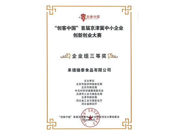 您的位置::首页荣誉资质”创客中国“首届京津冀中小企业创新创业大赛-企业组三等奖