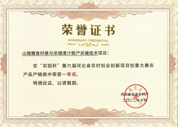 您的位置::首页荣誉资质2022“农担杯”第六届河北省农村创业创新项目创翼大赛一等奖