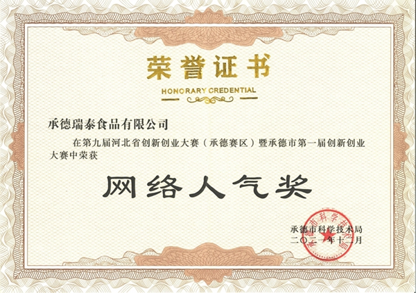第九届河北省创新创业大赛(承德赛区)承德市**届网络人气奖-2021年12月