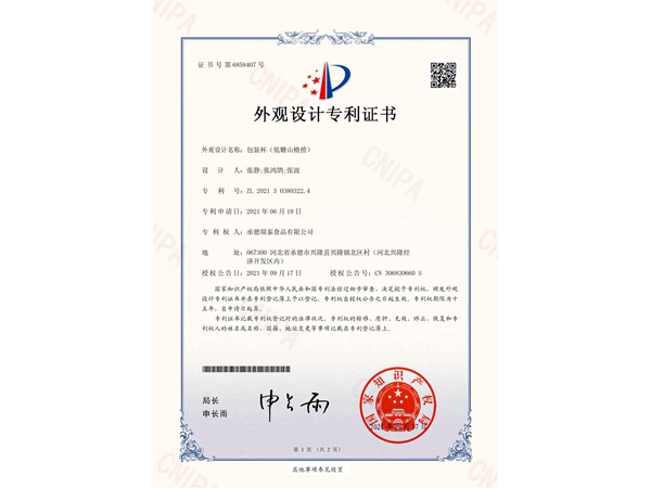 您的位置::首页专利证书外观设计专利证书-包装杯(低糖山楂捞)