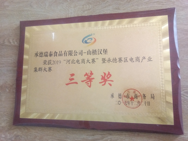 山楂汉堡:荣获2019“河北电商大赛”暨承德赛区电商产业集群大赛_三等奖-2019年12月20日