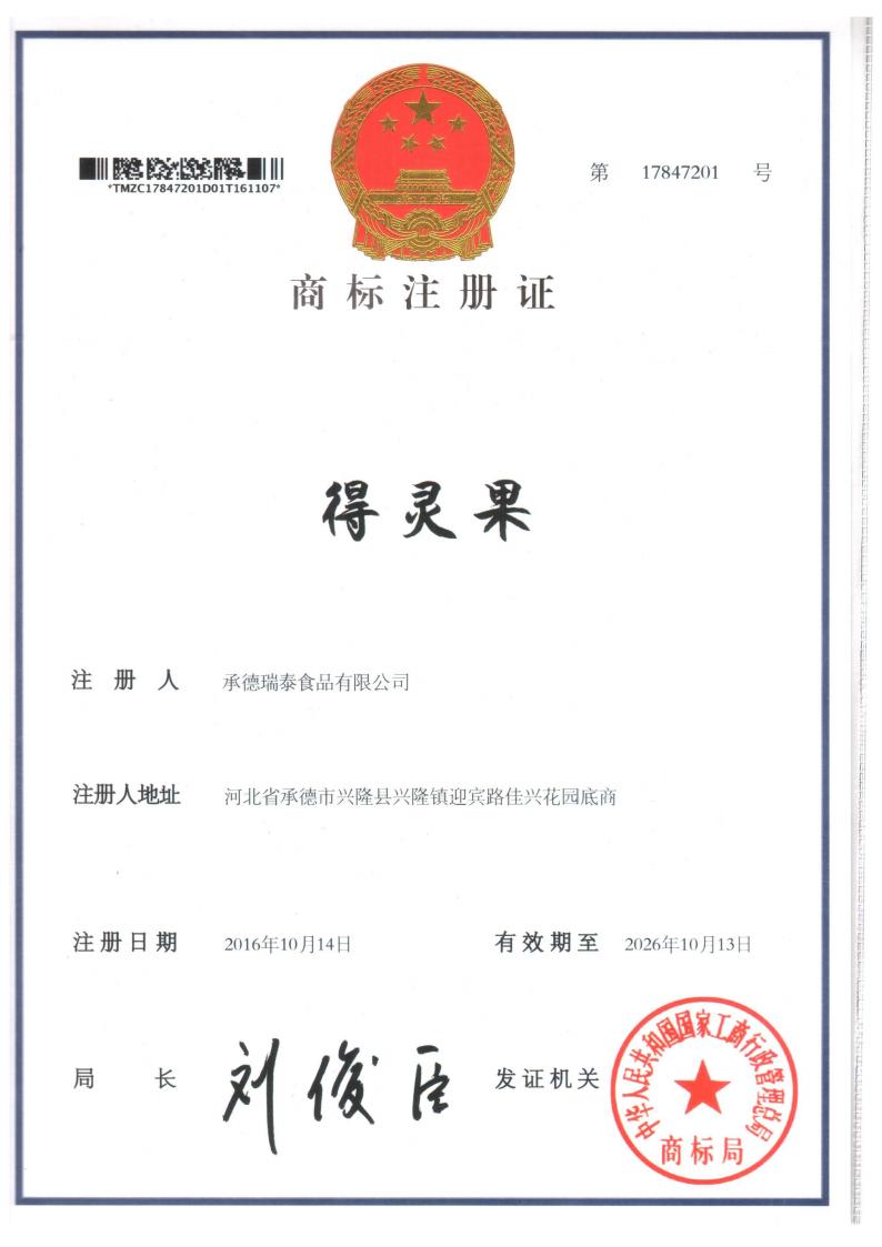 您的位置::首页注册商标得灵果32类17847201